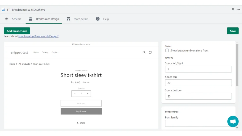 TT – Breadcrumbs & SEO Schema soluciona este problema de forma sencilla y sin necesidad de tocar una línea de código. Te permite añadir breadcrumbs visuales personalizables, es compatible con la mayoría de themes de Shopify y, lo más importante, incluye el schema markup necesario para que Google entienda la jerarquía de tu tienda.